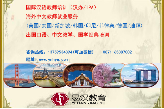 易漢教育是從事國際漢語教師(shī)培訓,考證、海外就業、中文教學及文化交流等方面服務的專業的機構,我們利用自身的優勢為(wèi)緻力于從事國際漢語教學的優秀老師(shī)提供一個(gè)發展的平台。現在我們優秀的老師(shī)已遍布美國、德國、俄羅斯、迪拜、新加坡、泰國、印尼、韓國等多(duō)個(gè)國家(jiā),出色的完成着傳播中國文化及弘揚中國民族精神的使命。